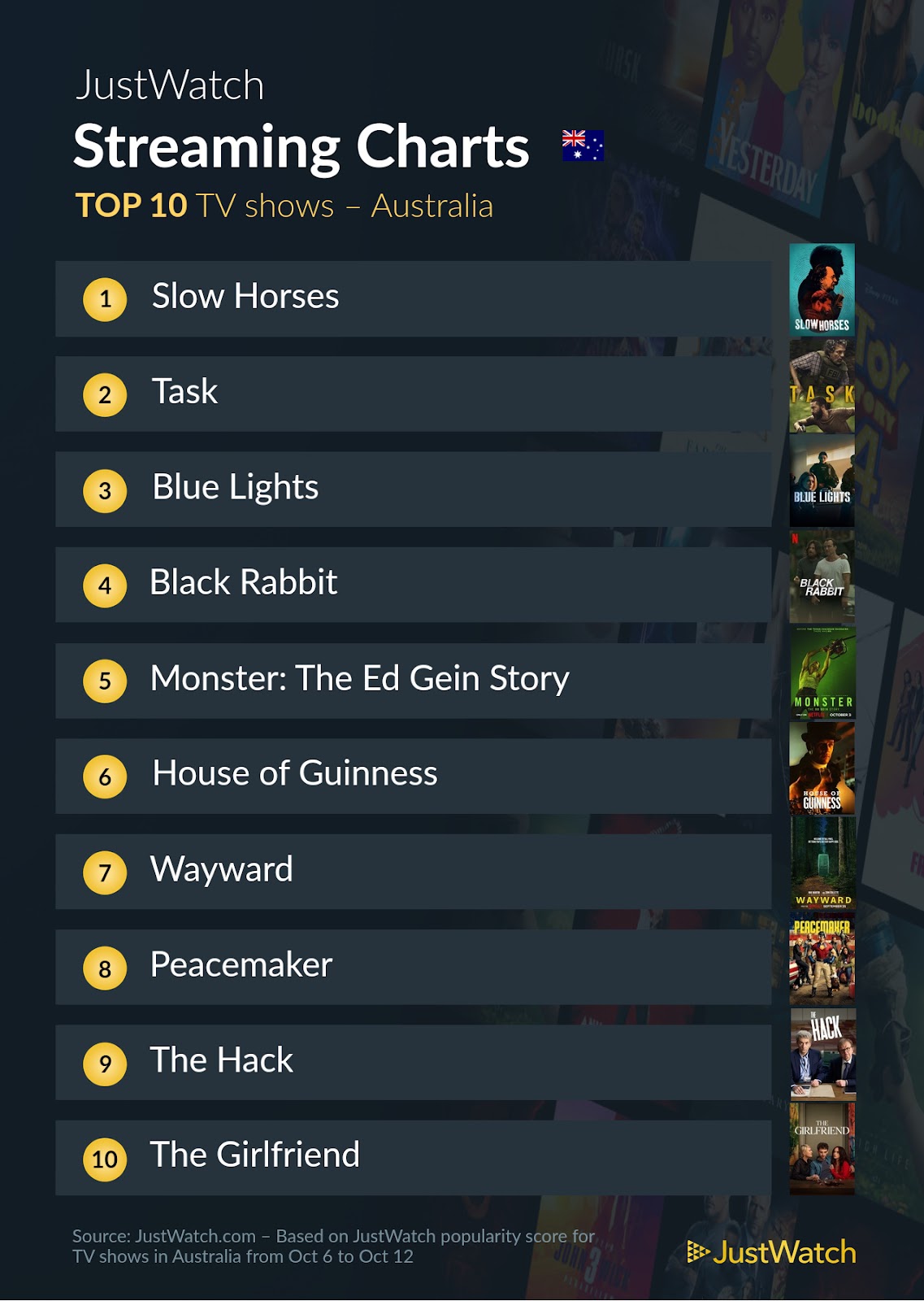 "Play Dirty", "The Lost City of Melbourne", and "Babygirl" left the top 10 to make room.