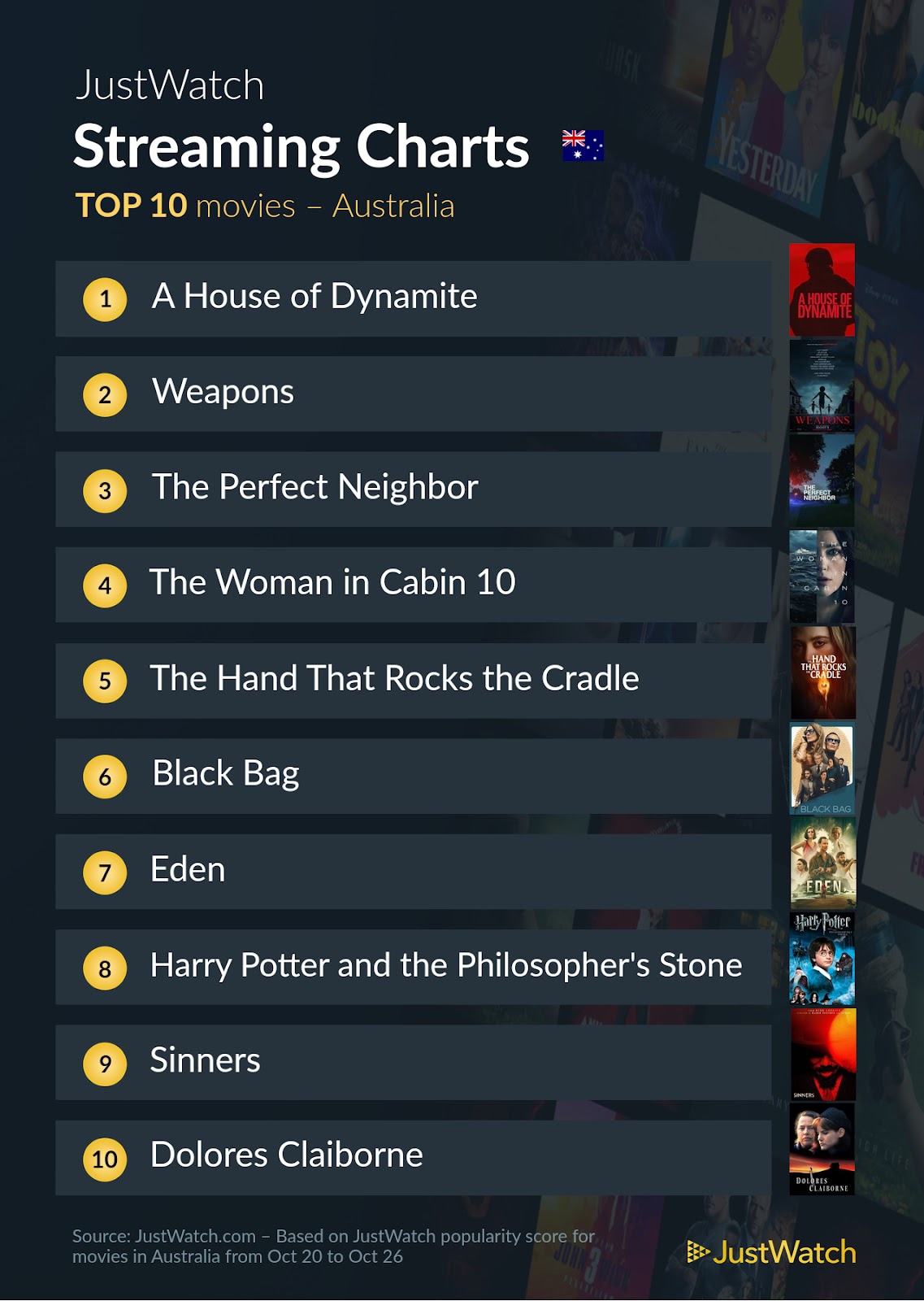Eden debuts in 7th, while there is a return to the top 10 for Harry Potter and the Philosopher's Stone in 8th. Sinners also returns in 9th.