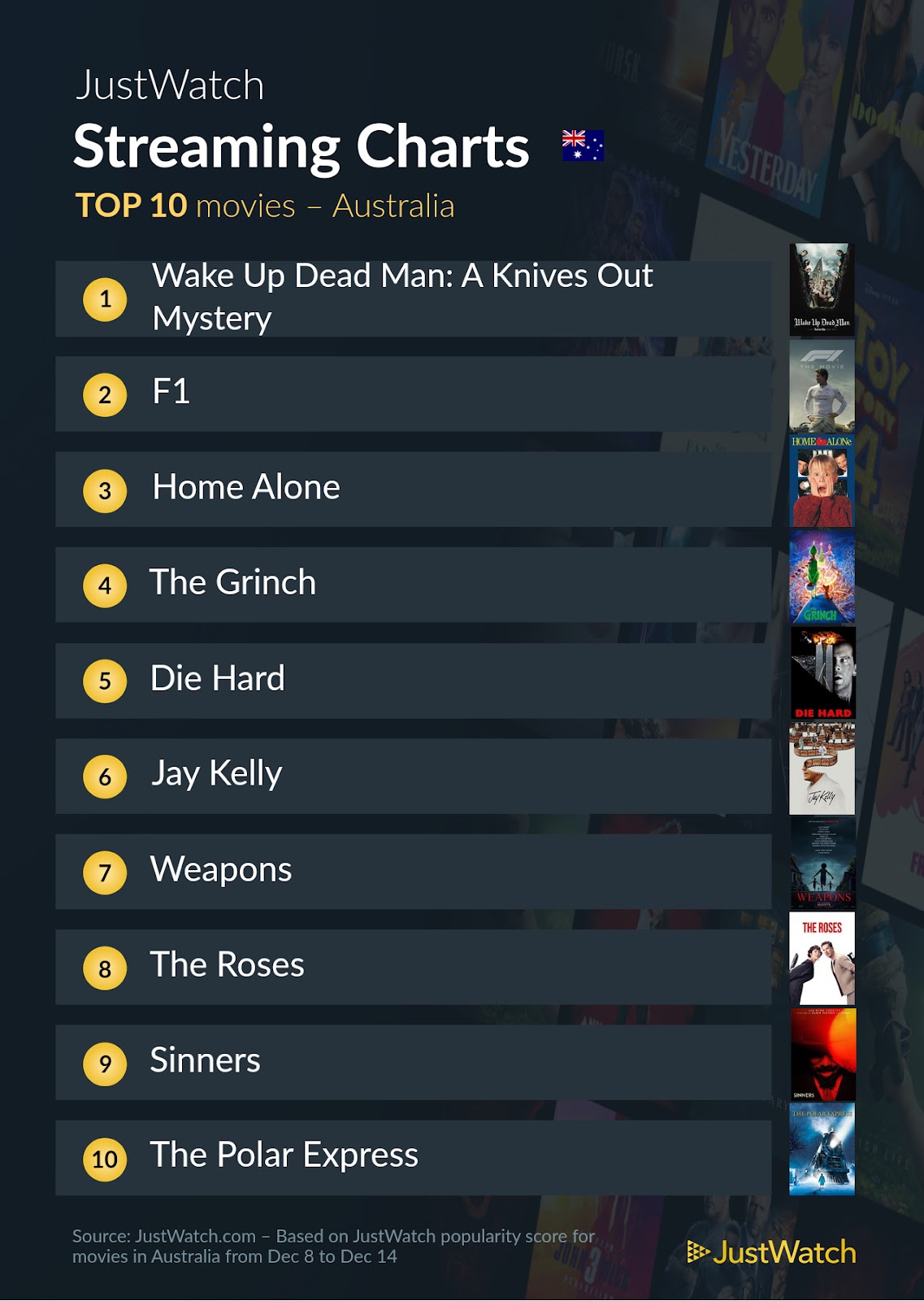 Welcome again to our weekly feature where we look at the most popular streaming movies and TV shows in Australia based on data collected by streaming search engine JustWatch. Data includes subscription streaming as well as transactional streaming titles. Click here to read last week's roundup.