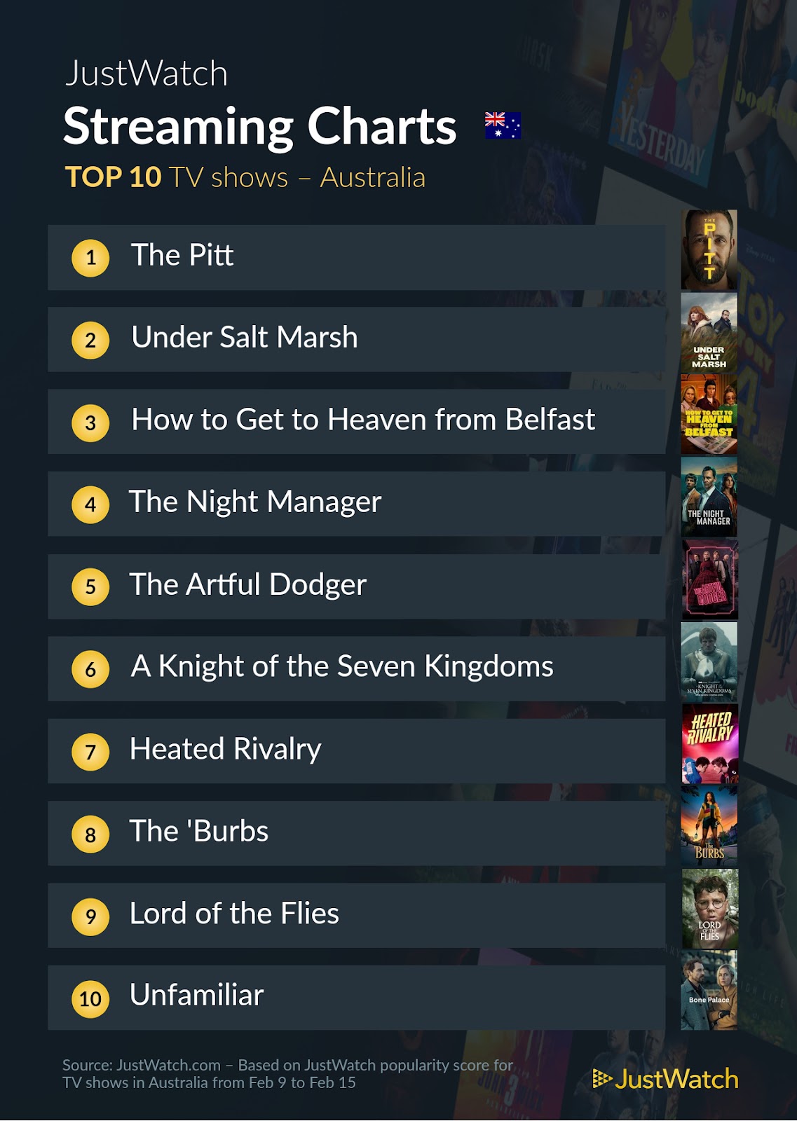 The new Netflix series How to Get to Heaven from Belfast debuts in third place.